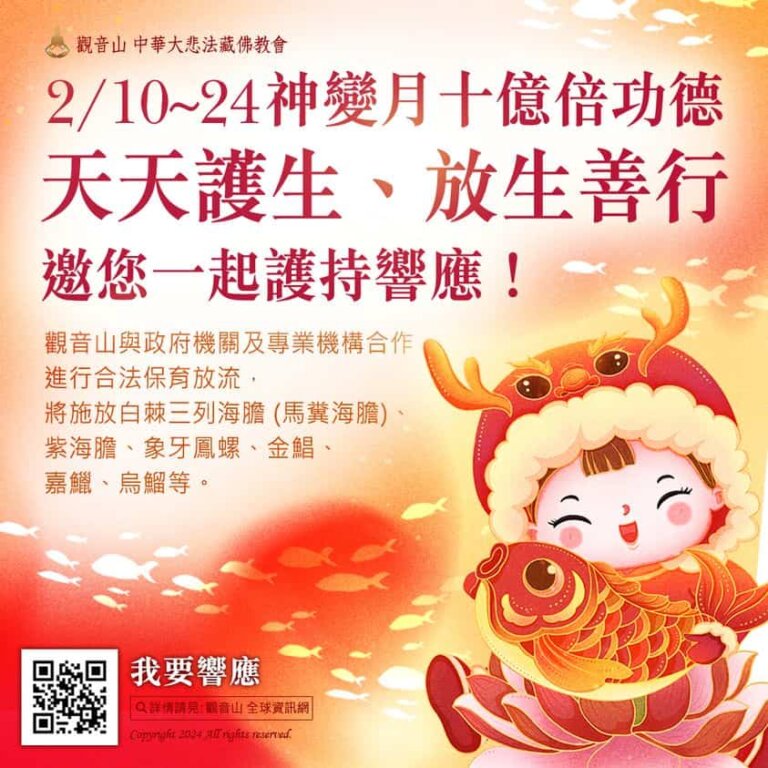 2月10日~24日神變月十億倍功德 天天護生、放生善行 邀您一起護持響應! 依藏傳…
